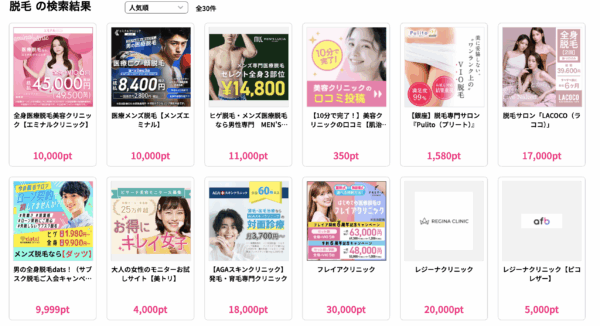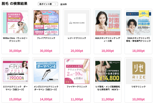 施術するクリニックに寄りますが、10,000円から35,000円のポイント獲得の期待ができます!